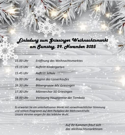 🎄 Kommt vorbei zum Gemeinde-Weihnachtsmarkt Griesingen! 🎄